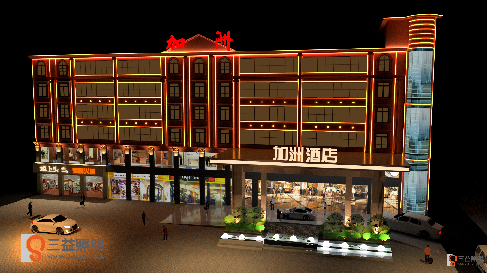 查看詳情益陽加洲酒店外墻亮化工程設(shè)計,本工程設(shè)計采用DMX512線條燈、DMX512硅膠燈制作全彩效果。